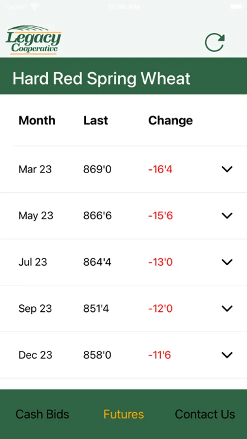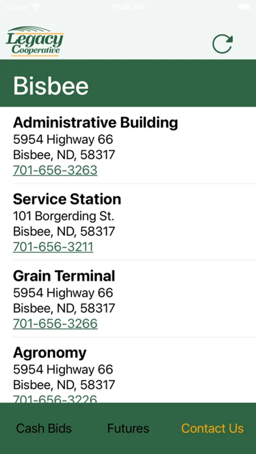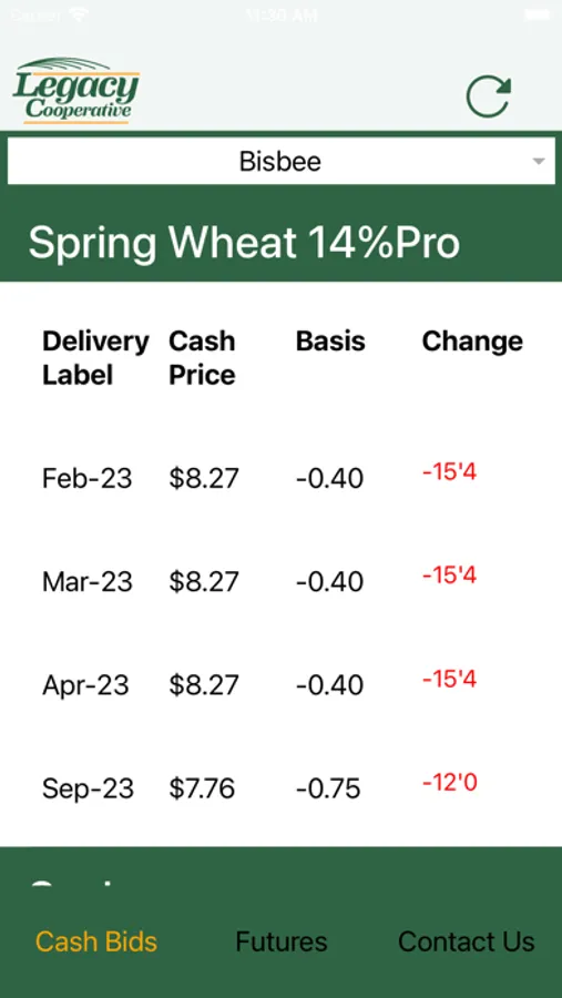 This is Legacy Cooperative's app to display our cash bids and futures quotes
