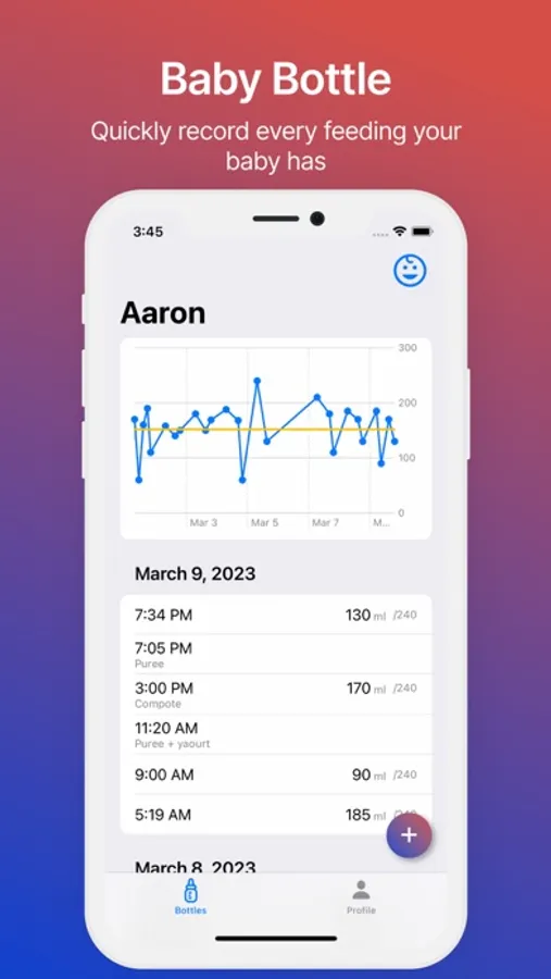 Our app lets you track the times and amounts of each feeding, so you'll never have to wonder if you fed your baby on time or if your baby has had enough to eat.