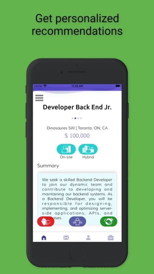 Direct Job recommendations: Get a job recommendation and respond to the employers directly by selecting Icons in-app: No thanks (to decline) or Meet (to accept) or Maybe (to send a feed to the employer on their offer.