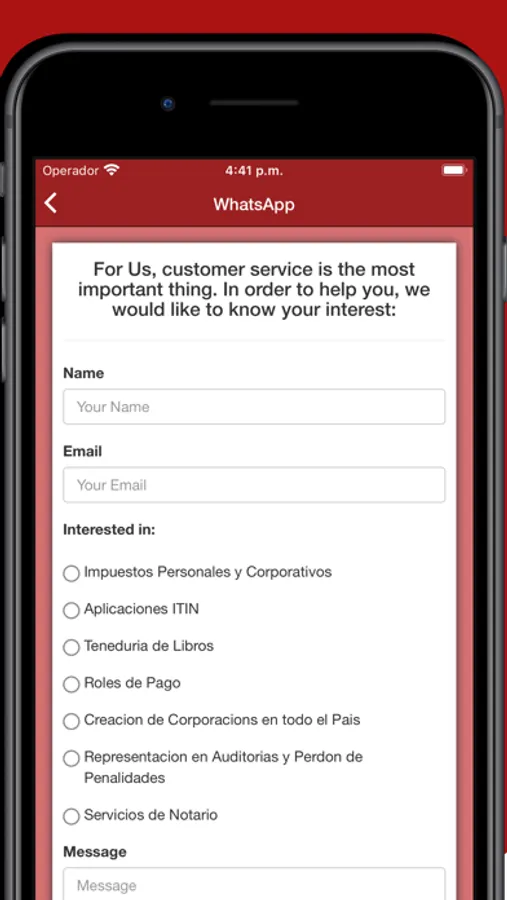 - Ayuda con un solo toque -(WhatsApp) Puedes tener comunicación directa con nuestra oficina seleccionando temas de interés.