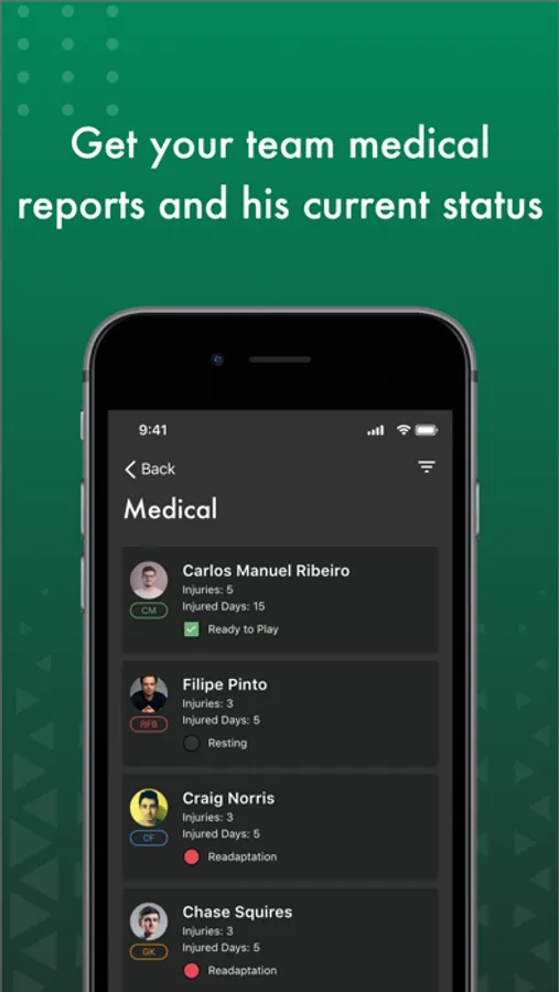 Designed for the player’s well-being. This application allows the information to arrive in a more agile and modern way to the Player. Use HealthKit Service