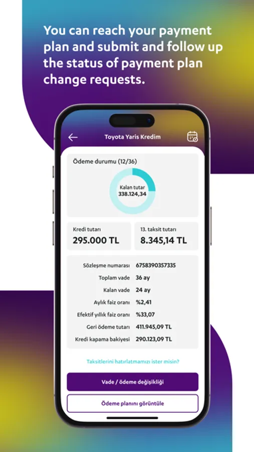 - Kredi taksitlerini ve ödeme planını takip edebilir; erken kapama, ara ödeme gibi taleplerini uygulamadan yapabilir ve takip edebilirsin.