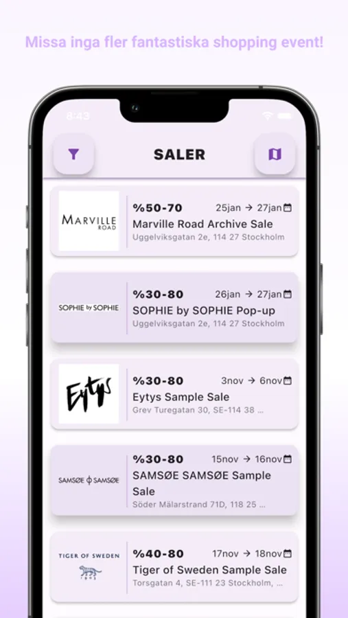 Med Saler kan du hitta shopping event, sample sales, pop up stores och mer i en simpel app!