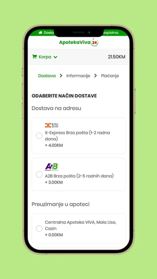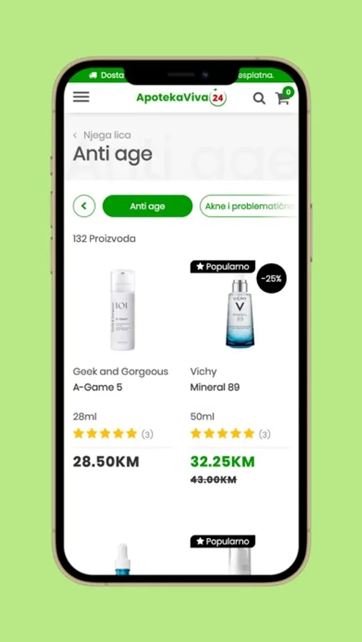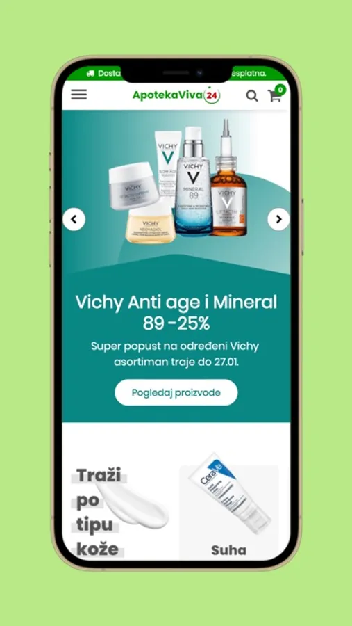 ApotekaViva24 je aplikacija preko koje možete kupovati kozmetiku, dodatke prehrani, medicinsku opremu i sve to sa vaših mobilnih uređaja, izravno na kućni prag. Šaljemo na cijelo područje Bosne i Hercegovine i imamo vrlo niske cijene dostave kao i besplatnu dostavu za pojedine proizvode ili ukupan iznos narudžbe.
