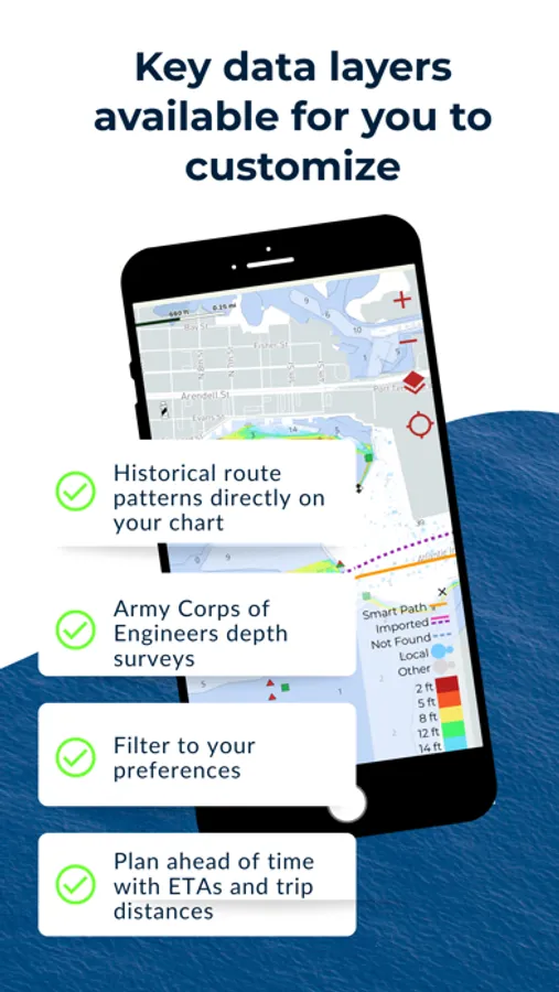 Tailor your charts to your needs. Filter data based on local captains, recency, and boat length, to get a personalized view of the waterways.
