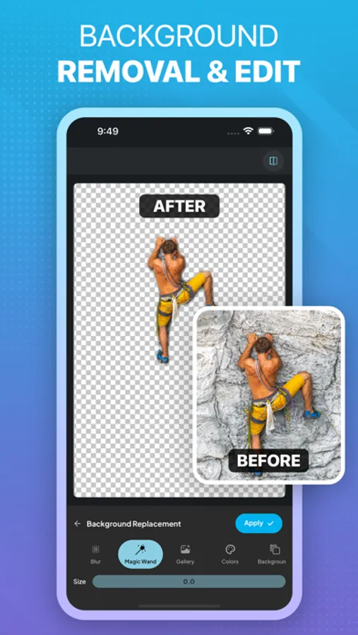 This magic app is designed to give you full control over your photos, enabling you to remove anything you don't want with just a few clicks. With the powerful eraser tool, you can easily get rid of any unwanted background and achieve a clean and clear image. And the best part? It's all done instantly, so you can get back to what really matters - capturing life's precious moments.