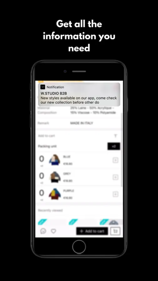 W.STUDIO B2B est notre application mobile de commande en ligne réservée à nos clients professionnels. Ceux-ci peuvent télécharger notre application et soumettre une demande d'accès. Après vérification et approbation de cette demande, ils pourront visionner les informations de nos produits et passer commande en ligne.