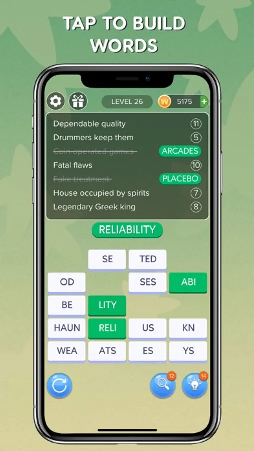 - Need a HINT? Use power-ups to REVEAL A LETTER, multiple letters, or an entire word!