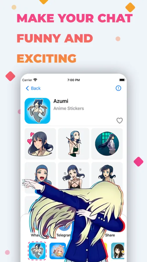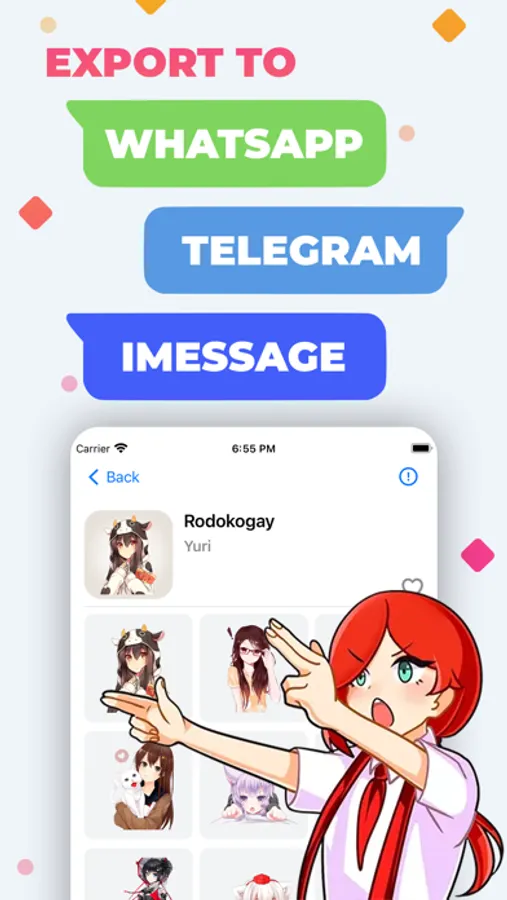 You can now use Anime Stickers - Sticker Maker in your daily conversation and reinforce it with large anime emotion stickers. You are now just a step away from bringing energy and life to your WhatsApp, Telegram and iMessage Chats.