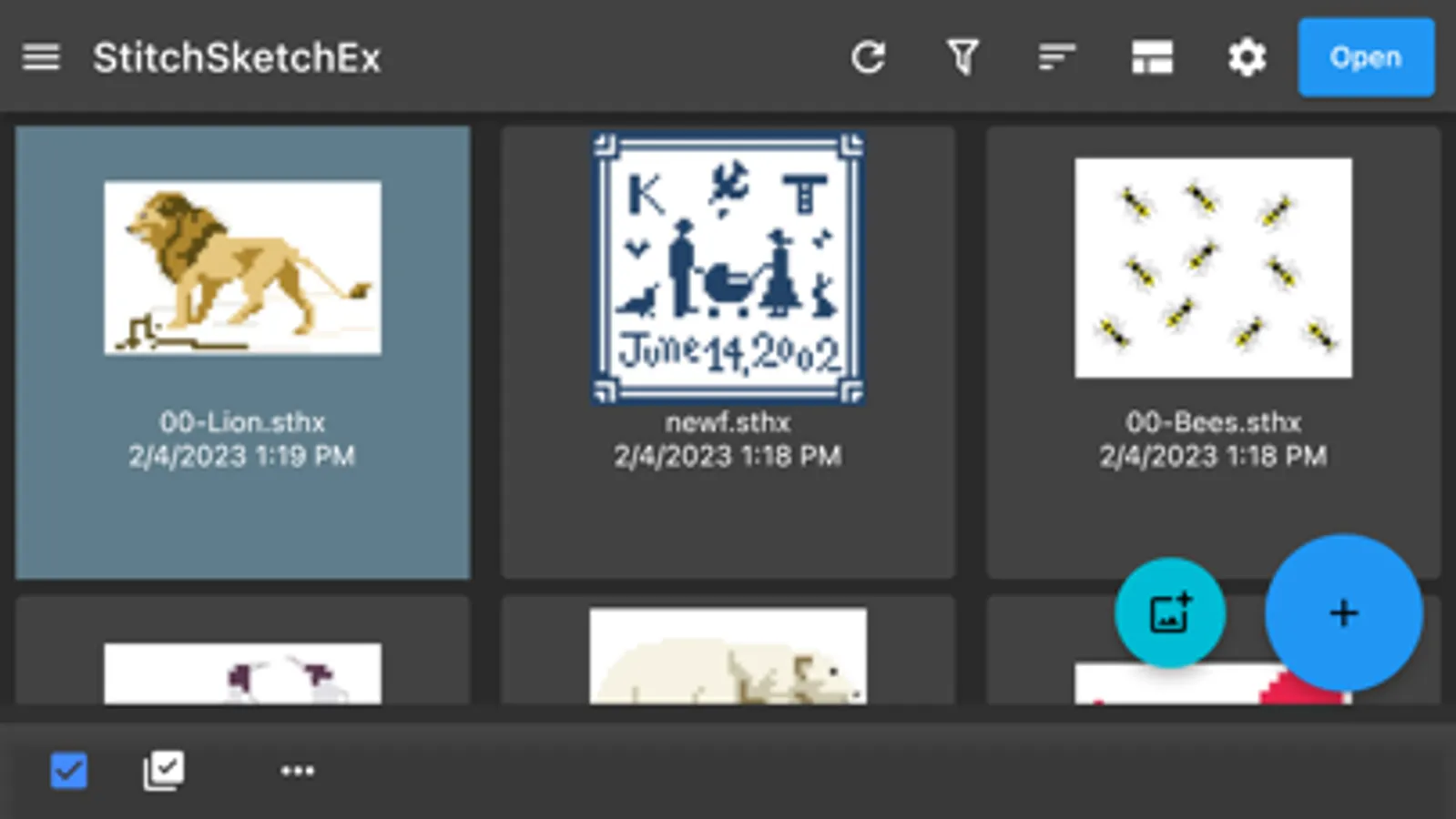 - Can load legacy files including KG-Chart (sth/sthbw) and StitchSKetch (sthmb).