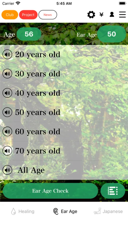 With the basic plan, you can measure your ear age in detail with the world's first ear age check in 1 year increments. Don't be discouraged if you are judged to be older than your actual age. By checking your ear age every day and using this app every day, your ears may be trained and rejuvenated. Register as a user (free) and keep a daily record of your ear age. Health care to be performed at ear age becomes possible. In addition, in the special plan, we have prepared Challenge frequencies up to the very limit of the audible range. Challenge yourself to your limit.