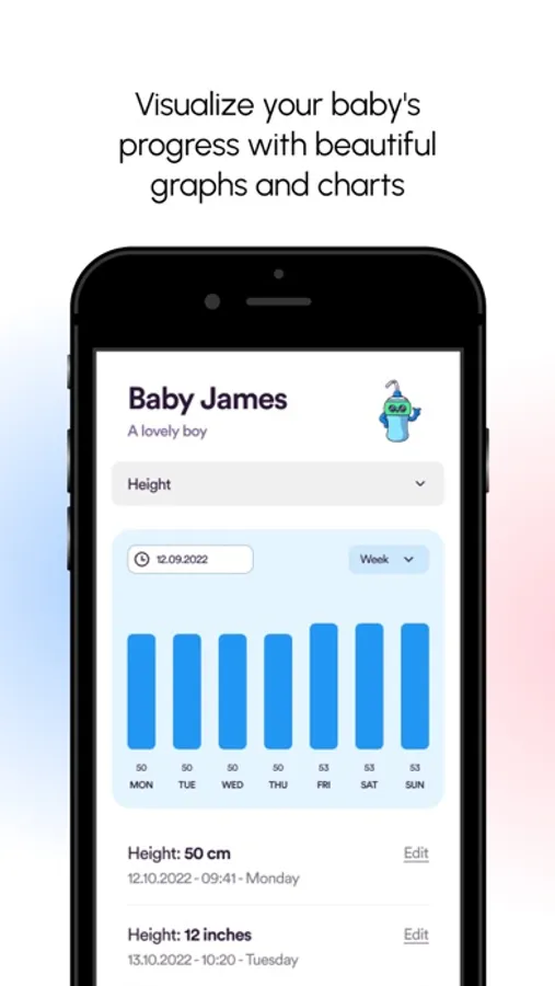 * Interactive graphs and charts for visualising your baby's progress