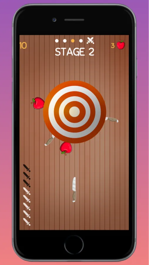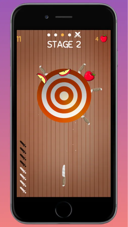 Knife Throw Cut Apple is a popular iOS game that challenges players to throw knives at an apple perched on top of a wooden block. The objective of the game is to hit the apple without hitting any other objects or obstacles. Players must aim and throw the knives with precision to successfully hit the apple and advance to the next level. The game includes various obstacles and challenges, such as moving targets and multiple apples, to test the player's skill and accuracy. The game also includes a leaderboard to track players' scores and compete with others. Overall, Knife Throw Cut Apple is a fun and challenging game that tests players' hand-eye coordination and precision.