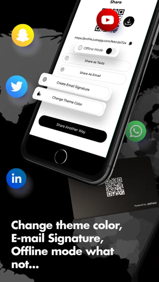 Say goodbye to the hassle of reprinting and redesigning cards whenever you need to update your information. Justagg: Digital Business Card app is designed to fill in your profile details once, and you can download your digital business card anytime, anywhere, on the go. With this innovative app, you can easily share your contact information and make a lasting first impression with a simple tap.