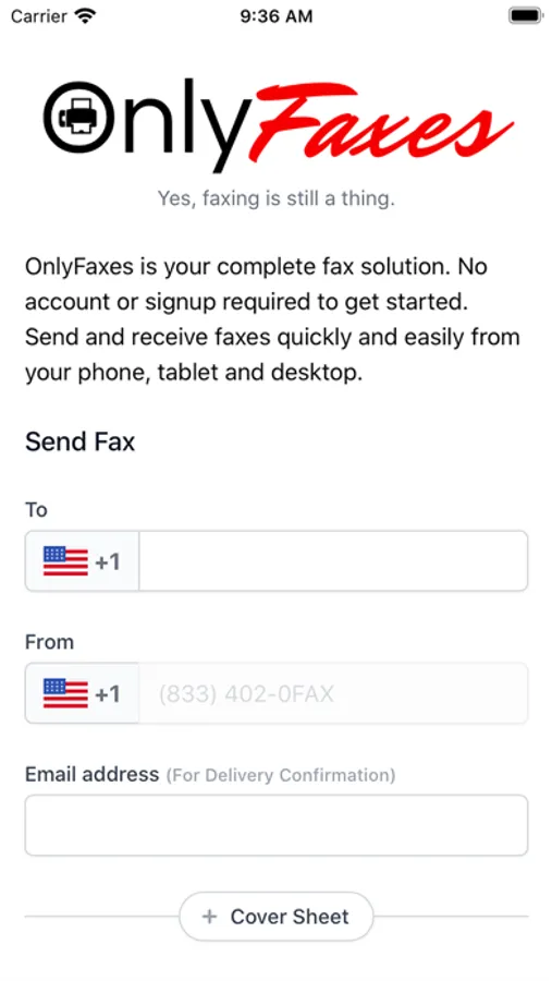 OnlyFaxes is your complete fax solution. No account or signup required to get started. Send and receive faxes quickly and easily from your phone.