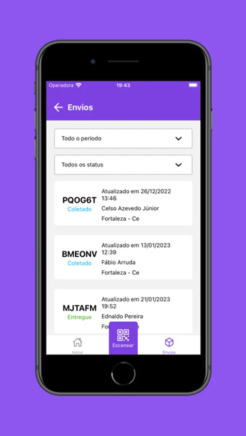 Gerencie seus envios de maneira rápida e fácil através do app.