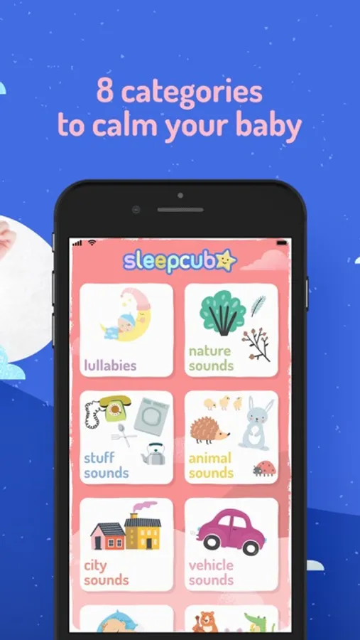 SleepCub helps your baby to go sleep with relaxing and soothing sounds during bedtime. Choose from 70+ high-quality lullabies, ambient and colic sounds, and calm your beautiful baby. SleepCub will help you play soothing and peaceful sounds like the womb, white noise, raindrops falling on leaves, waves crashing on the shore, or birds chirping outside their window.