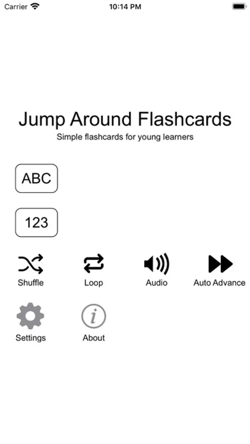 Learn ABC's and 123's with simple flashcards. Features include audio answers, auto-advance, shuffle, and support of light or dark mode all presented with clean, simple, intuitive controls.