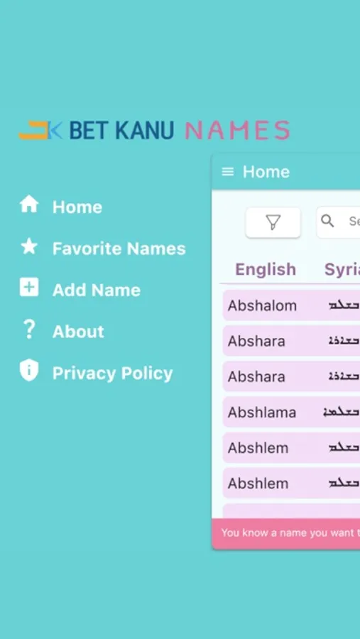 BET KANU Names App is the best place to find a unique Syriac name for your newborn. Whether you prefer religious names, cultural names, short names, compound names, or even historical names using ancient Assyrian, Akkadian, and Sumerian names, BET KANU Names is the solution for you.