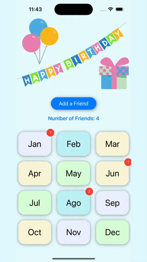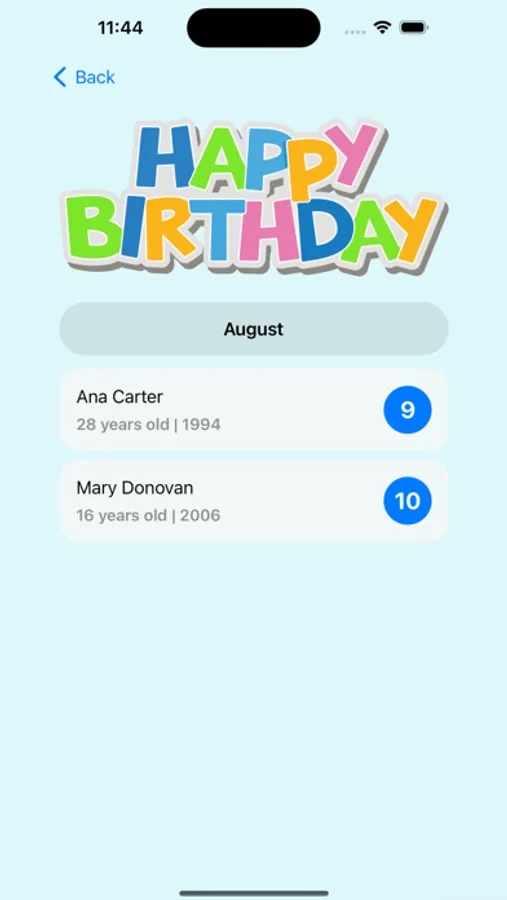 You can quickly visualize the number of friends have a birthday in a specific month, select the month and see in order crescent of the day, who is having a birthday, how old he is and which year he was born.