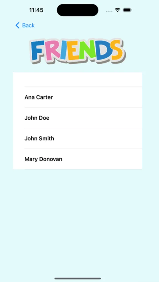 If you want to see all your friends you have in your app, just click the "Number of Friends" button in the main screen, you will also be able to delete a friend from that screen, just swipe your finger on the person name to your left.