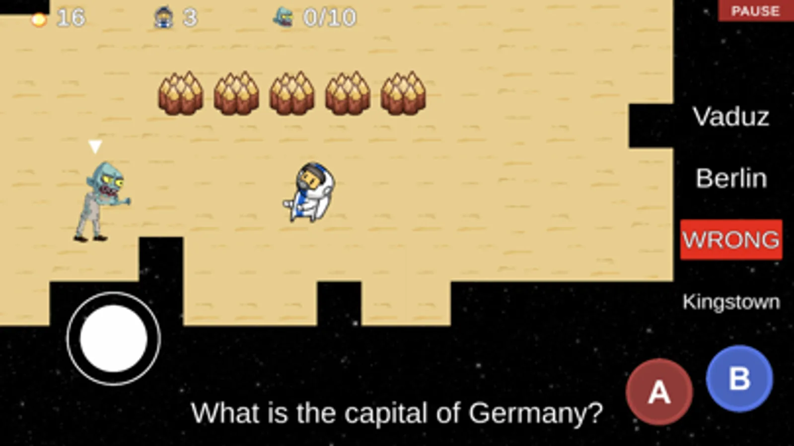 Zombie School is a 3rd person shooter + education game. Players must answer questions (math, periodic tables, capital cities) while also dodging and aiming at zombies.