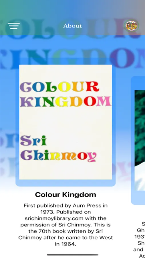 Each color embodies a certain quality. In this app, Sri Chinmoy explains the inner meaning of 52 selected colors. The color charts allow the reader to meditate on the qualities that appeal to them most or that they need most. Illustrated app with 52 colors plates for meditating, concentrating, relaxing.