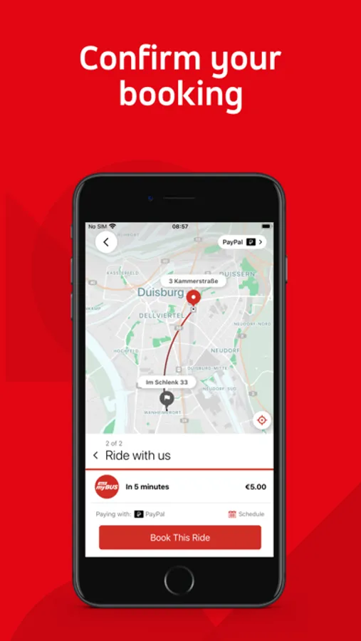 With myBUS we offer you a flexible mobility solution that is tailored to your individual needs. As an addition to our public transport network, you can ride myBUS in the evening and at night - 7 nights a week, throughout Duisburg. myBUS does not follow fixed routes or schedules. We'll pick you up where you are and take you comfortably to your destination in a minibus.