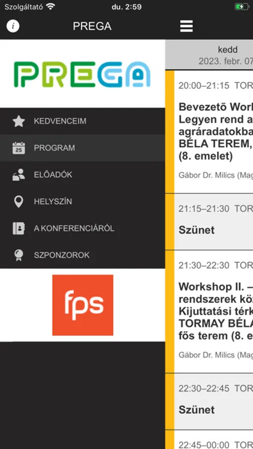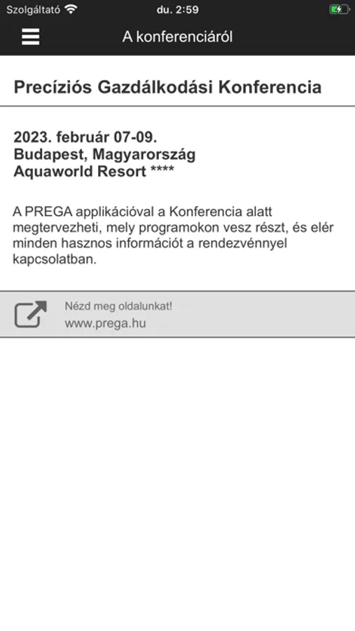 A PREGA applikációval a konferencia alatt megtervezheti, mely programokon vesz részt, és elér minden hasznos információt a rendezvénnyel kapcsolatban.