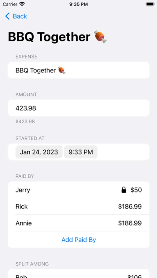 - Choose to specify the amount for some payers and participants, and let the app automatically calculate the remaining sharing amount