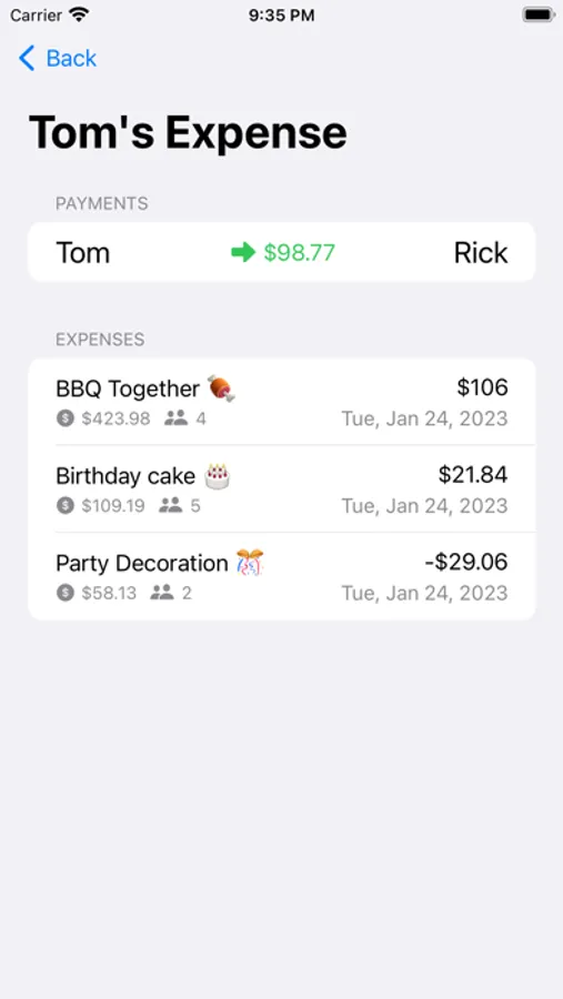 Together - Effortless expense split is the perfect app for managing group expenses with friends. Whether you're planning a birthday party, a trip with friends, or any other group event, this app makes it easy to combine multiple expense items, generate a simple and accurate sharing plan, and split expenses with as few transfer actions as possible.