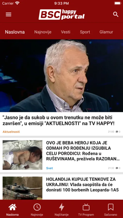 iOS aplikacija Happy BSC Portala. Najnovije vesti iz zemlje, sveta kao i rijaliti programa na jednom mestu.