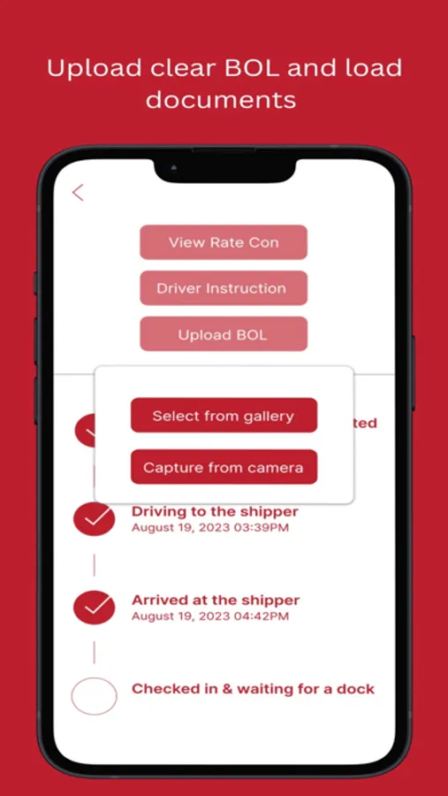 5. Drivers can upload clear copies of the BOL and other documents through the app after the load is completed.