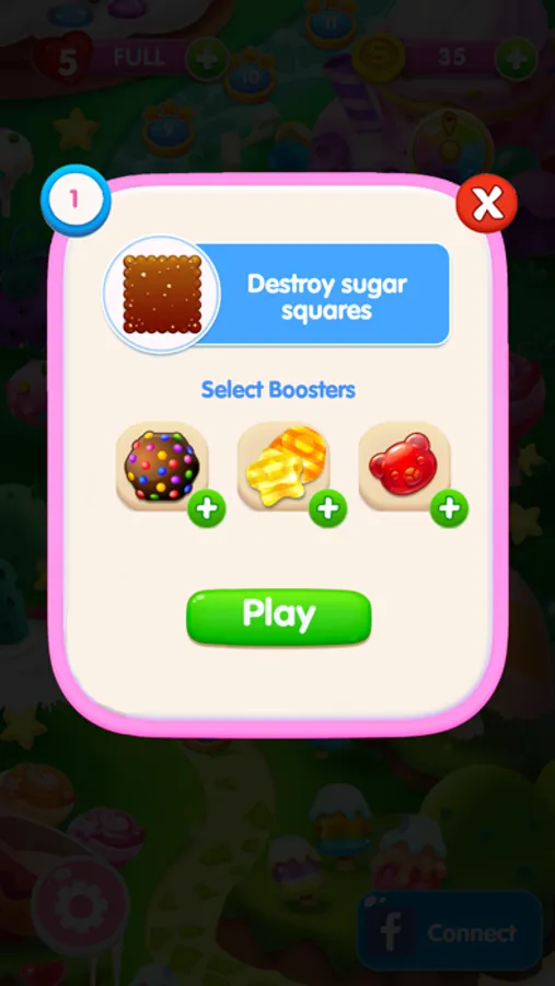 Pop the sugars and eat them all, pass the level. Enjoy your playing.