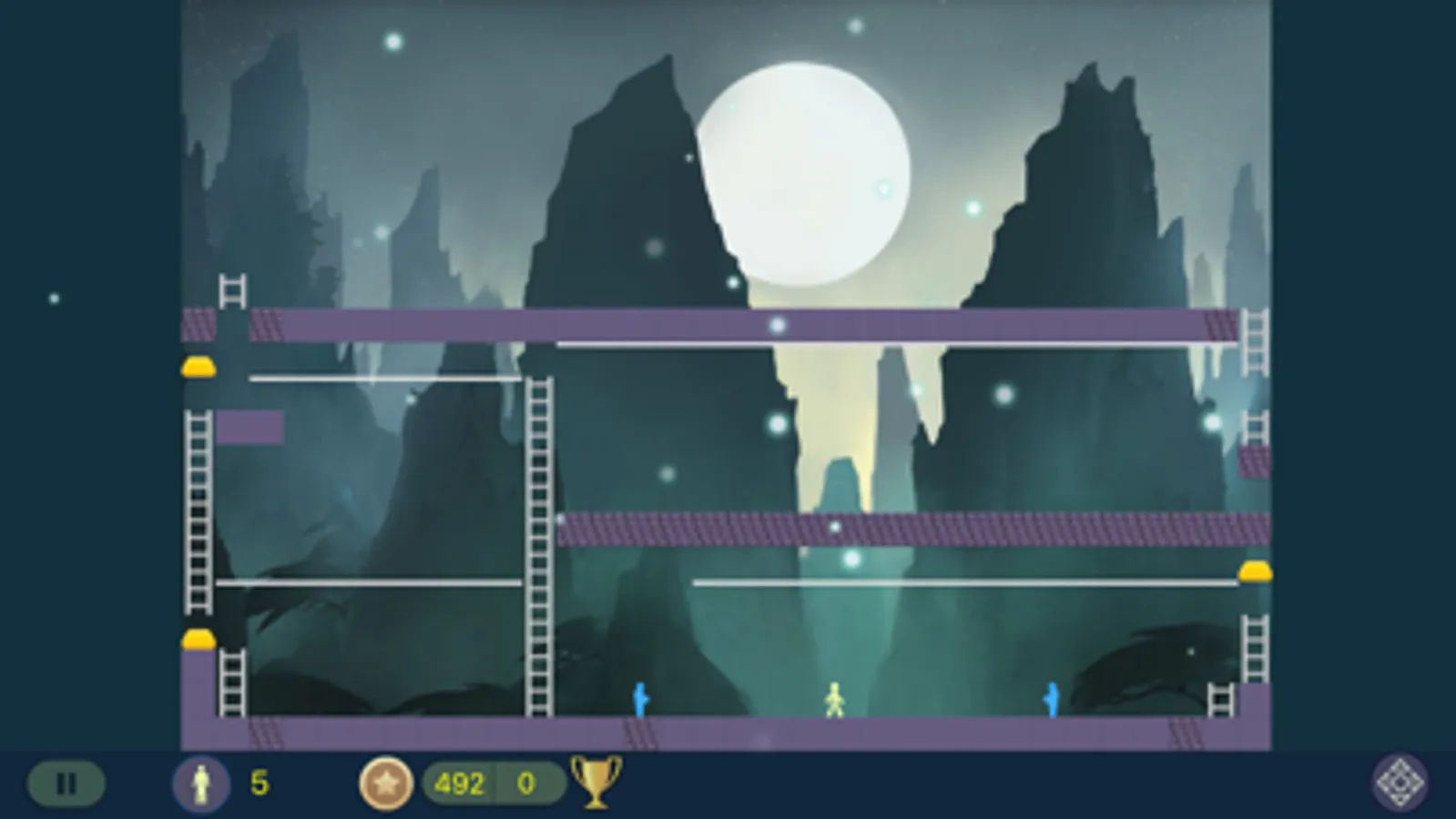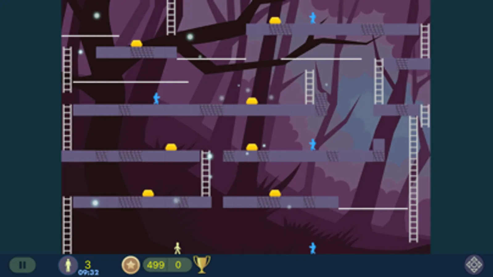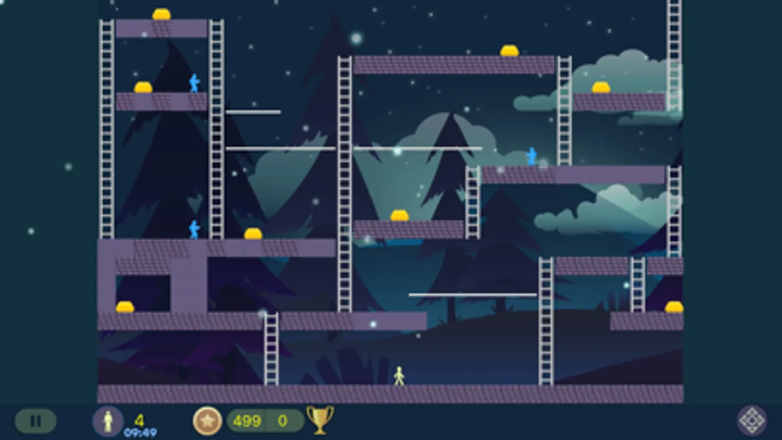 Gold Hunter is it an outstanding game, where gold treasures need to be collected in 150 levels. Up to 5 enemies try to make it hard for you. You can run, use the ladders, climb along the bars and collect treasures. As soon as you have collected all the boxes and up until now invisible ladders can appear. If you have reached the most upper line of the screen, you will get into the next level. You cannot jump, but you carry a weapon with you, with which you can dissolve the bricks for a certain time. No matter how far you will fall, you cannot get hurt. There is no time limit but the guards which reappear after their death keep you busy.