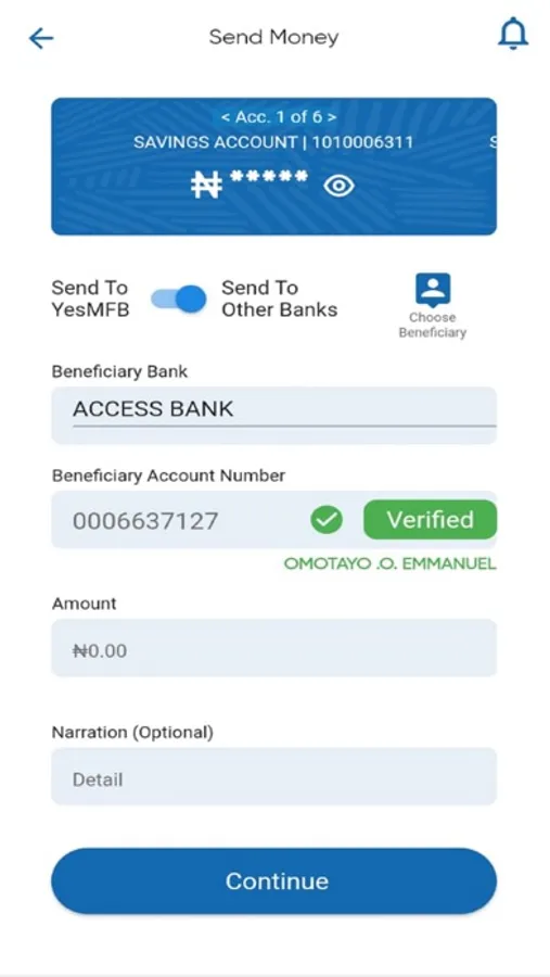 - If you need help, you can reach out to us on the app via the contact details or send a message to us at care@yesmfbank.com anytime.