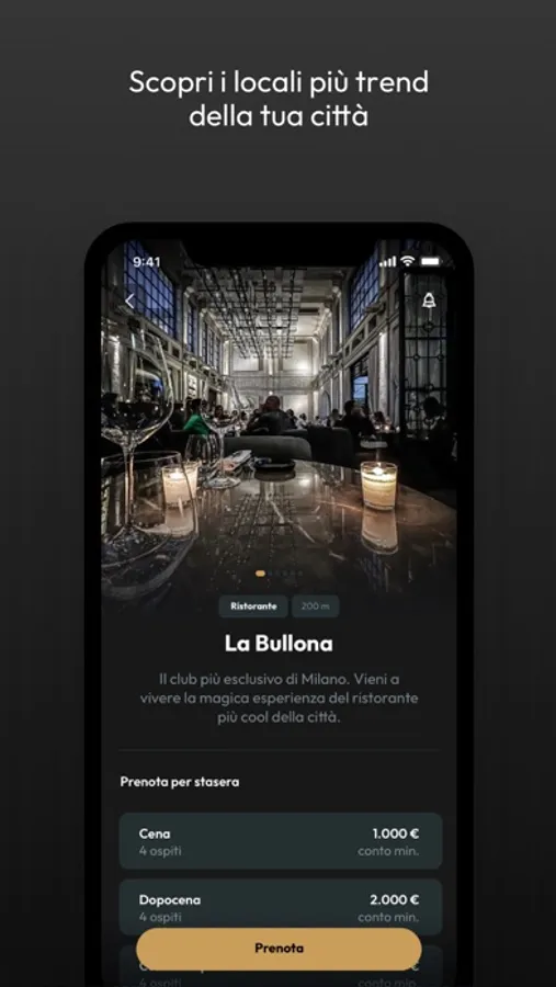 Trigapp offre la possibilità di prenotare anche all'ultimo minuto nei locali più esclusivi della città. Scegli il locale che desideri ed accetta di spendere il conto minimo proposto per prenotarlo in meno di 30 secondi.