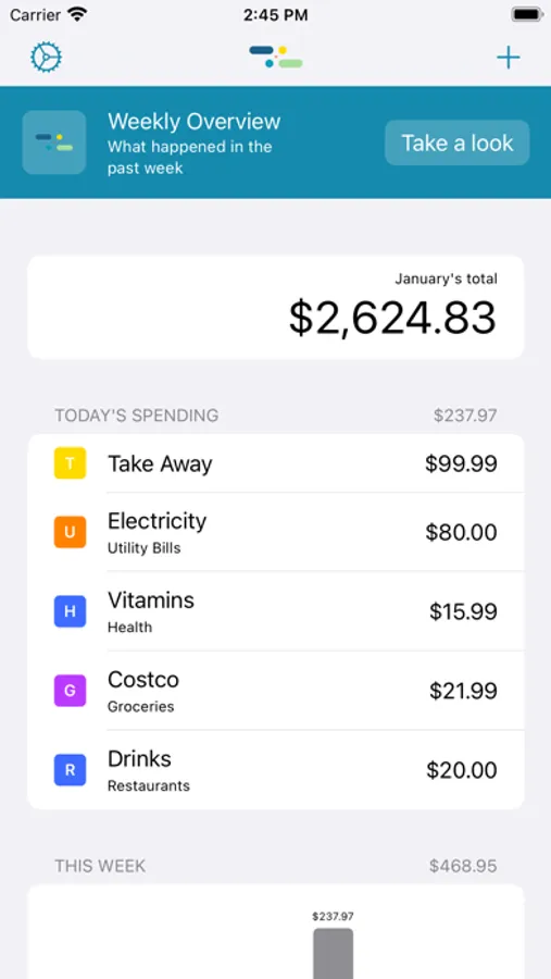 Get week's overview reports on your spending.