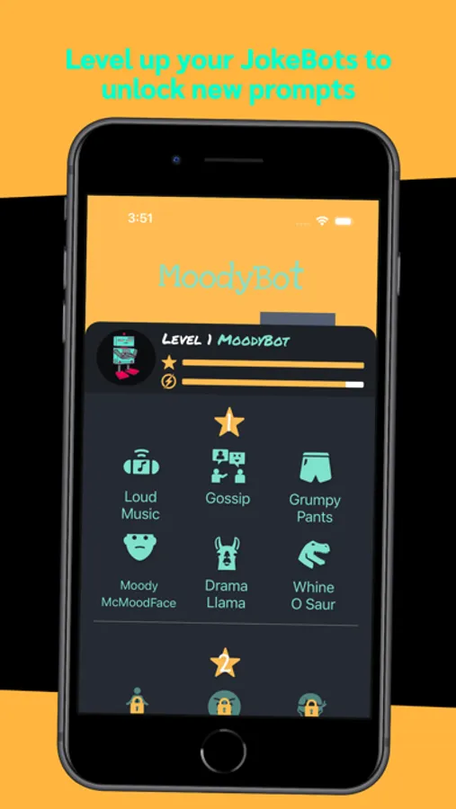 Ask for Jokes and give feedback to your bots to level them up unlock new prompts.