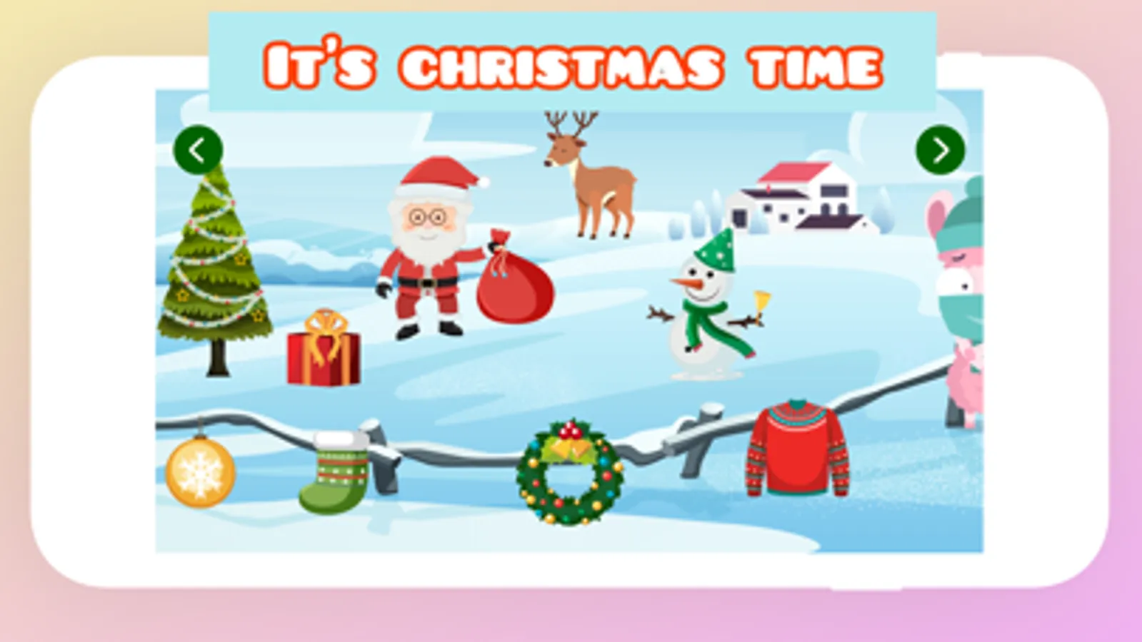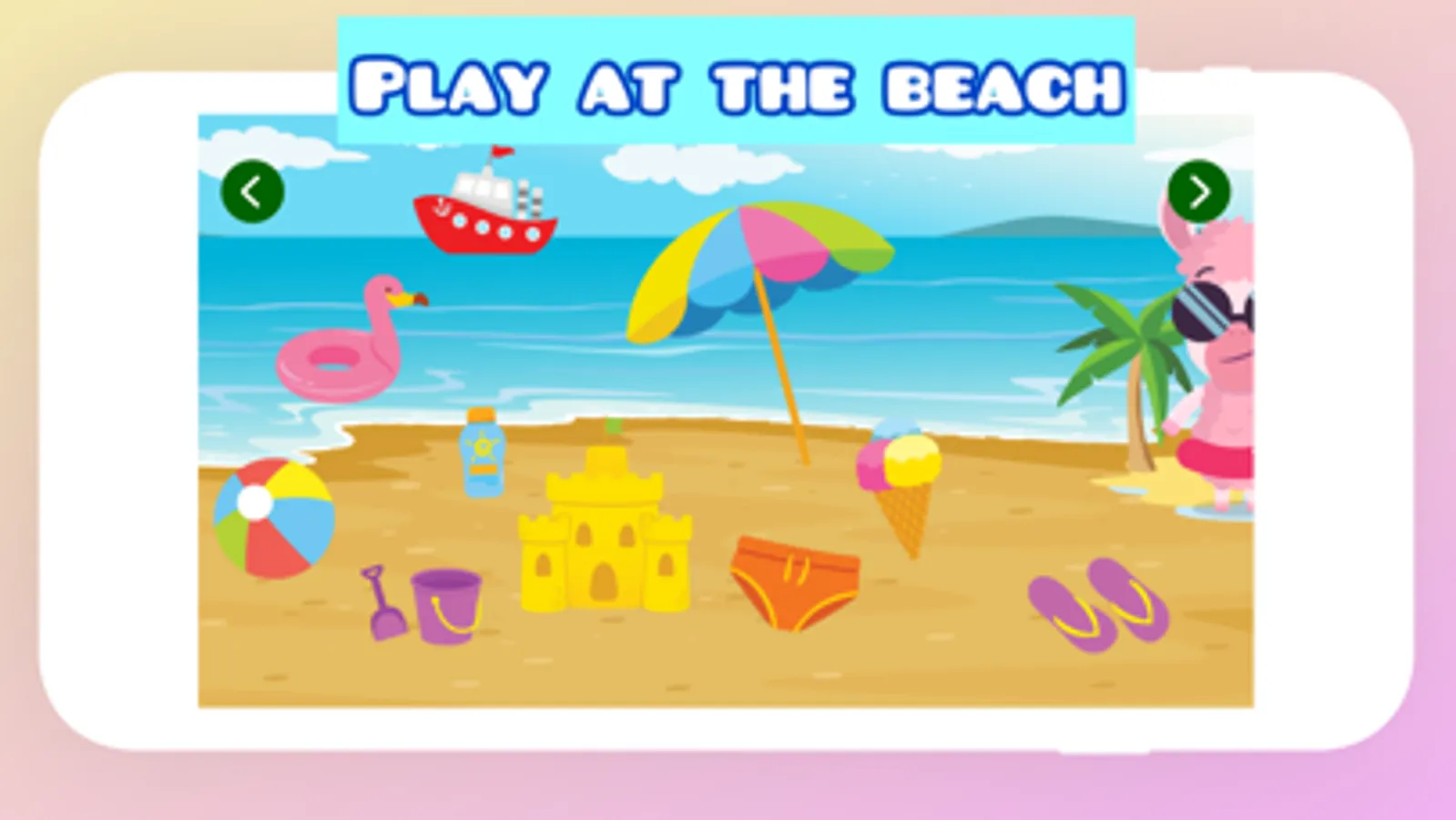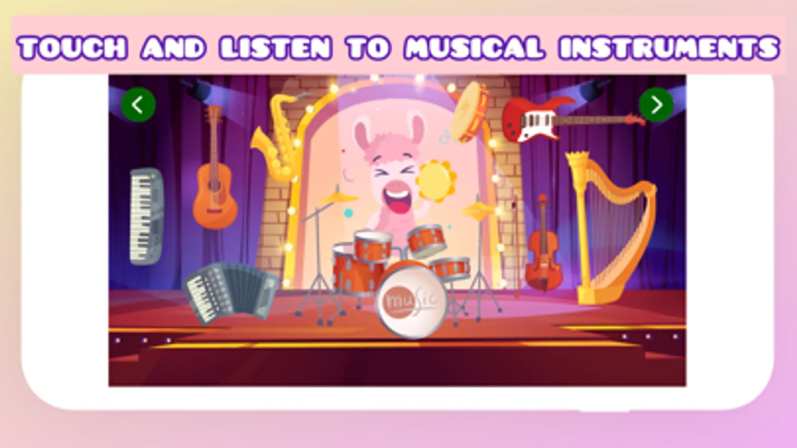 Touch and learn the names of the animals, fruits, vegetables, music instruments, clothes and much more. Play a guessing game to recognise real world-objects.