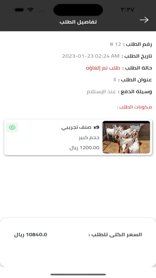 في حالة إلغاء الطلب يمكنك ارسال رسالة عن طريق ايقونة الشكاوى أو التواصل من خلال الرقم الذي تم التواصل معك من خلاله لتأكيد الطلب.