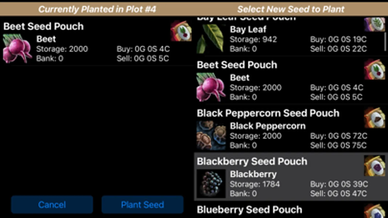 *This app DOES NOT alter your in-game garden plots. It is merely a tool to keep track of what you have planted and plan what you want to plant.