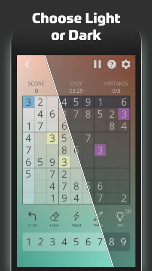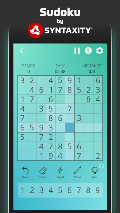 How is Sudoku by SYNTAXiTY different? It’s the fun and challenging game you know, but with the engaging, player-centered experience you’ve come to expect from SYNTAXiTY games. Opening the app you will find clean and immersive design with a transparent interface over soothing gradients.