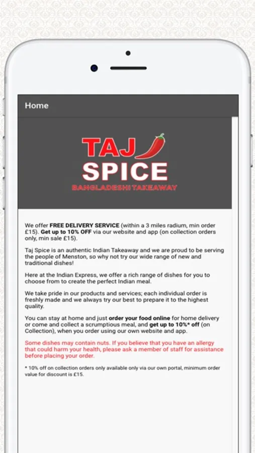 We offer FREE DELIVERY SERVICE (within a 3 miles radium, min order £15). Get up to 10% OFF via our website and app (on collection orders only, min sale £15).