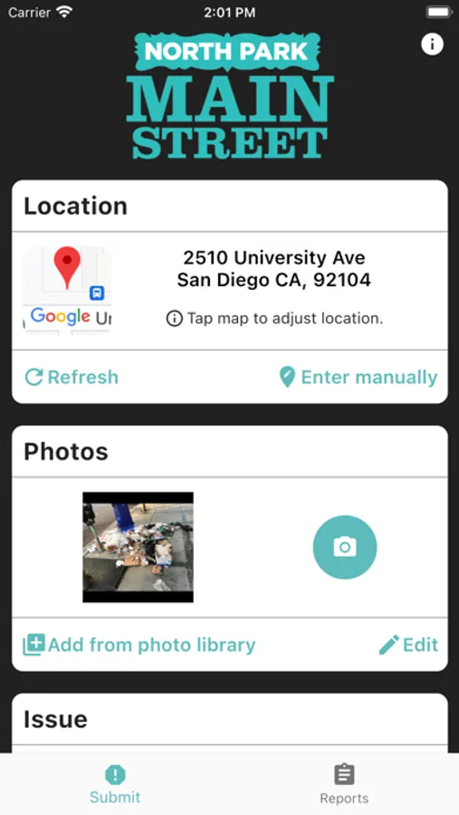 Directly report NON-EMERGENCY maintenance and public safety concerns in North Park’s Business District. Message directly with our maintenance team to identify problems like overflowing trash cans, graffiti, tree trimming requests, and much more.