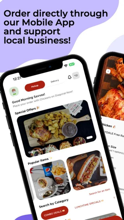 Download the Chickens on Diagonal App today to gain access to our full menu, order through the app, receive exclusive in-app discounts and gain reward points for each order to use on future purchases!