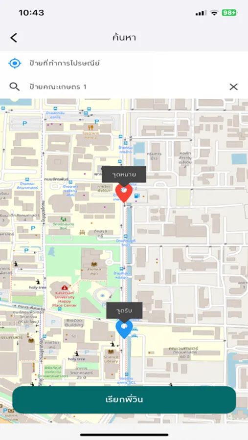 เรียกใช้บริการรถมอเตอร์ไซค์ไฟฟ้ารับจ้างภายในมหาวิทยาลัยเกษตรศาสตร์ บางเขน ใช้ได้ทั้งบุคลากร นิสิต และผู้มาติดต่อมหาวิทยาลัย โดยให้มารับตามที่กำหนดได้