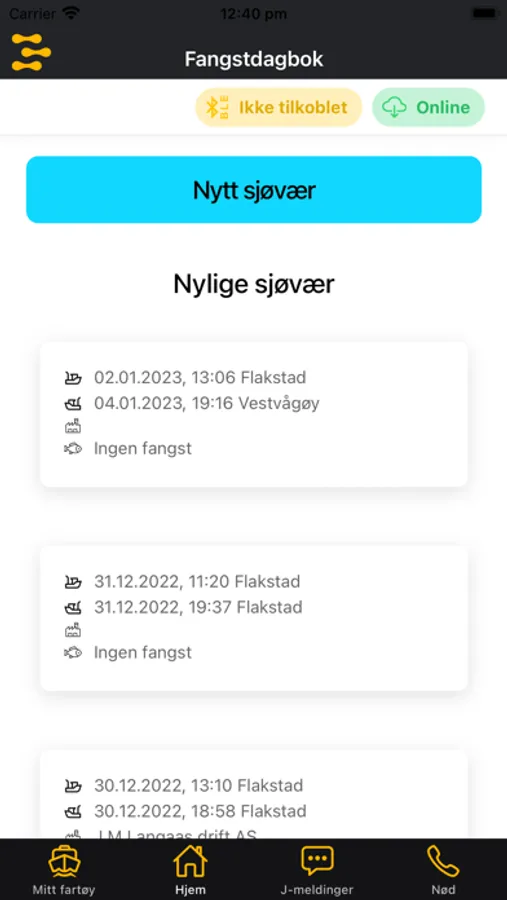 Dette er Apollo Lofotens Fangstdagbok og ERS-rapportering for norske fiskefartøyer.