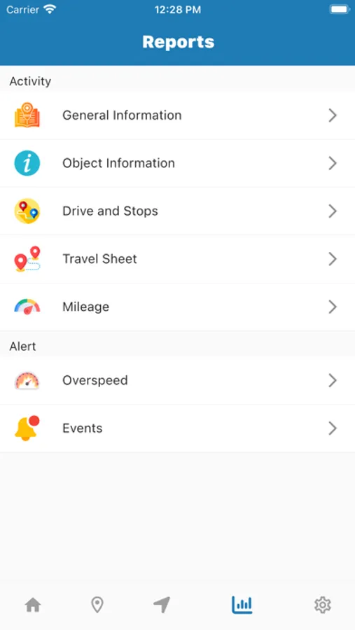 Route of the asset being tracked can be viewed in a report form providing information such as device name, speed, mileage, battery etc.