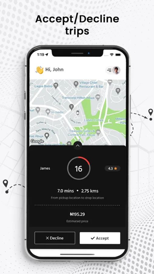 • Accept ride/package request